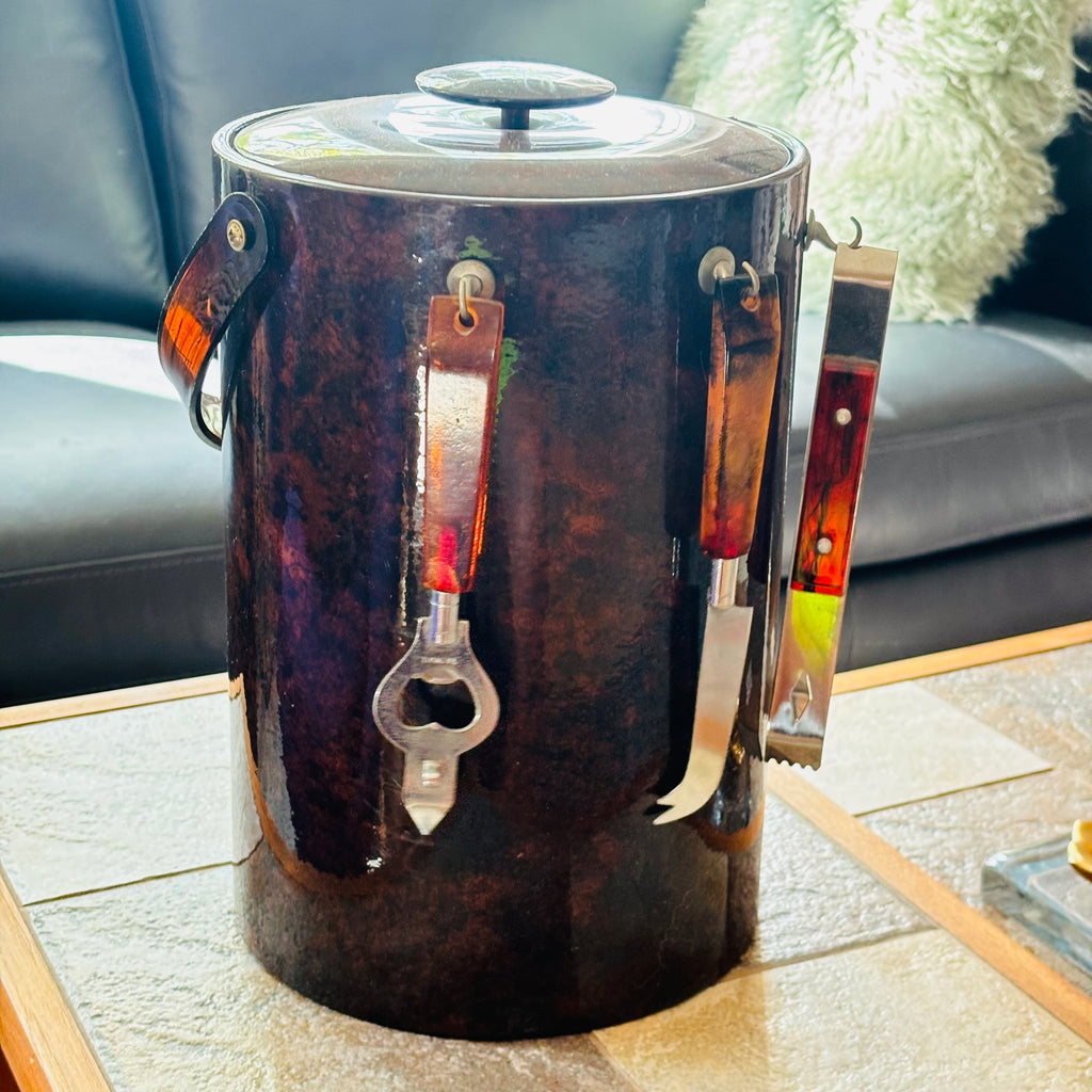 Georges Briard Signed Lucite and Tortoise Vinyl Ice Bucket With Tools