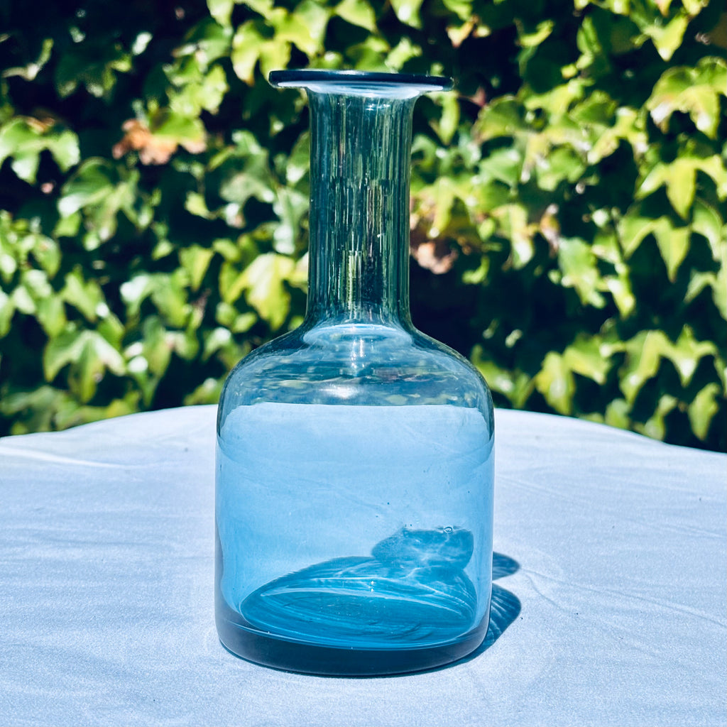 The Ikea Blue Glass Bottle, inspired by the elegant designs of Holmegaard, brings a splash of Scandinavian charm to your home. Its vivid blue hue adds a playful pop of color while the sleek glass form makes it perfect for serving water, infused drinks, or even as a stylish vase.