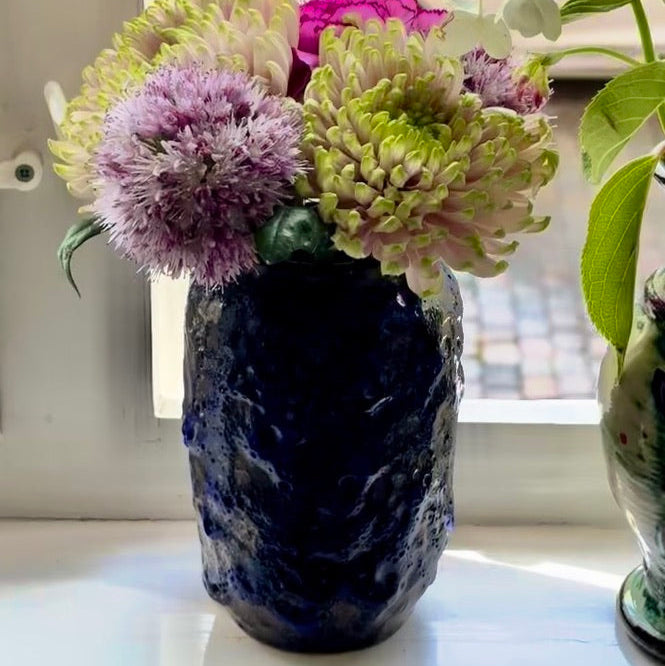 Midnight Blue Fat Lava Vase Art Vase