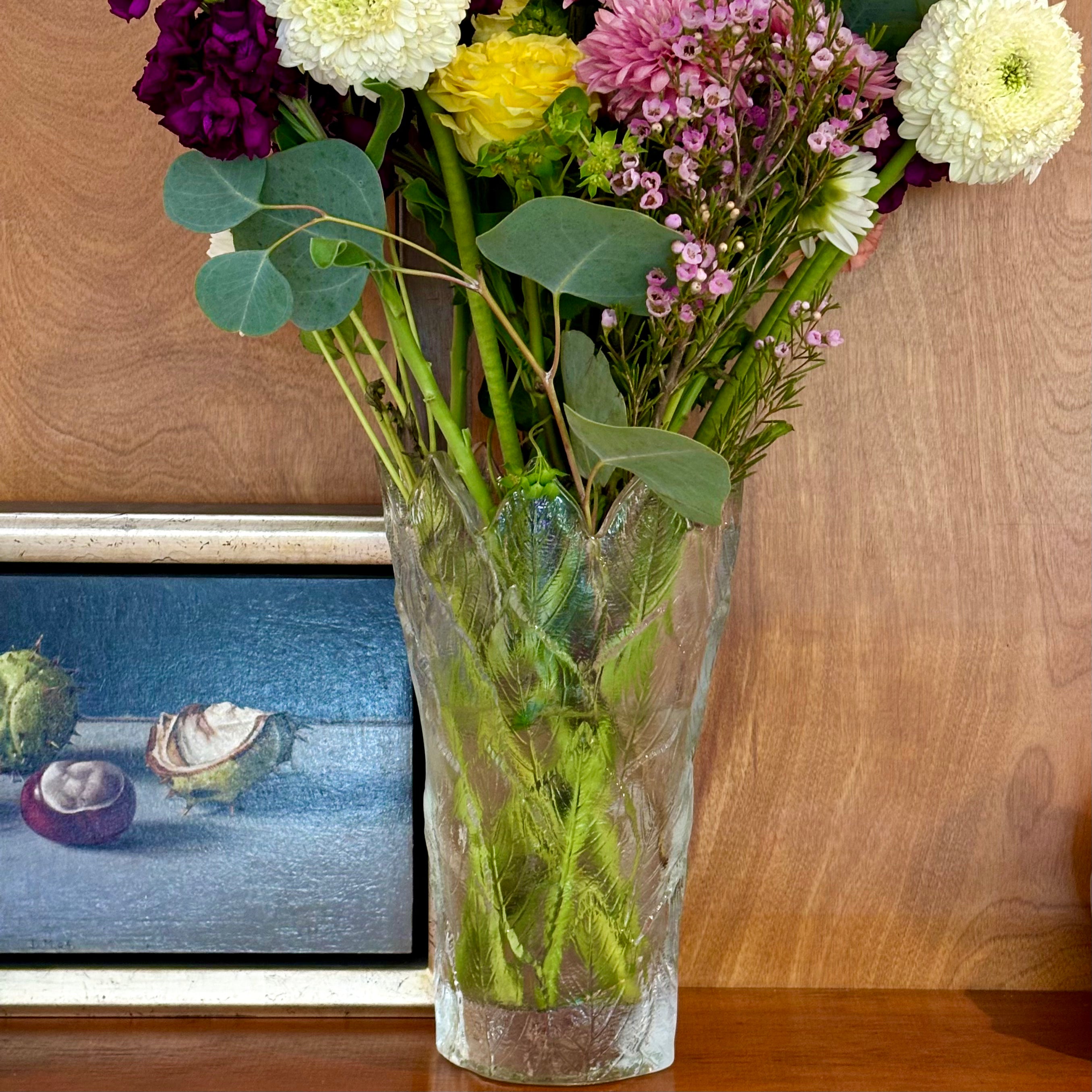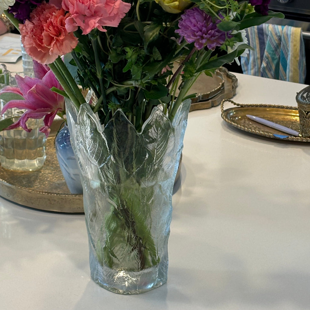 Show off your unique decorating style with this stunning Mikasa Rainforest Clear Glass Vase! Made in Japan, this vase features a leaf motif that was crafted using pressed and fused glass production techniques. Perfect for displaying your favorite flowers or as a stand-alone art piece, this vase will add a touch of elegance to any room.