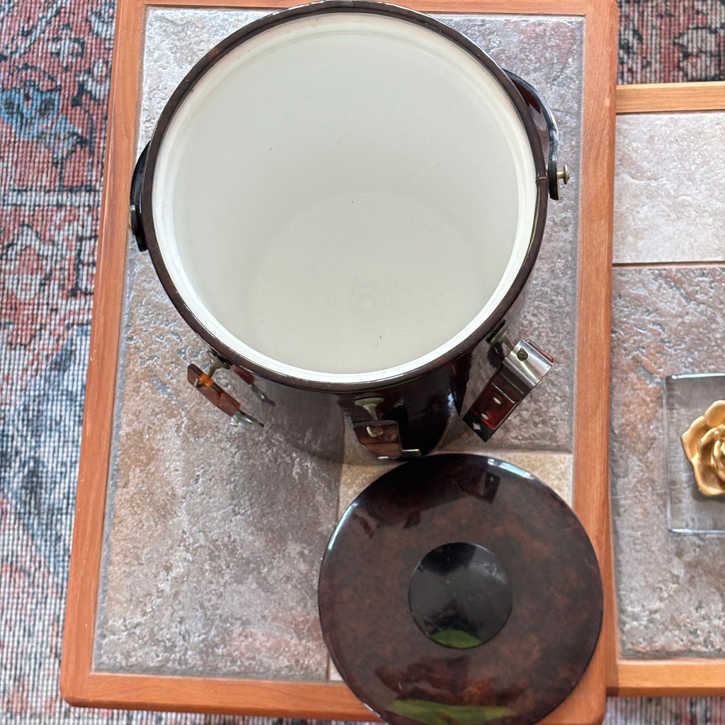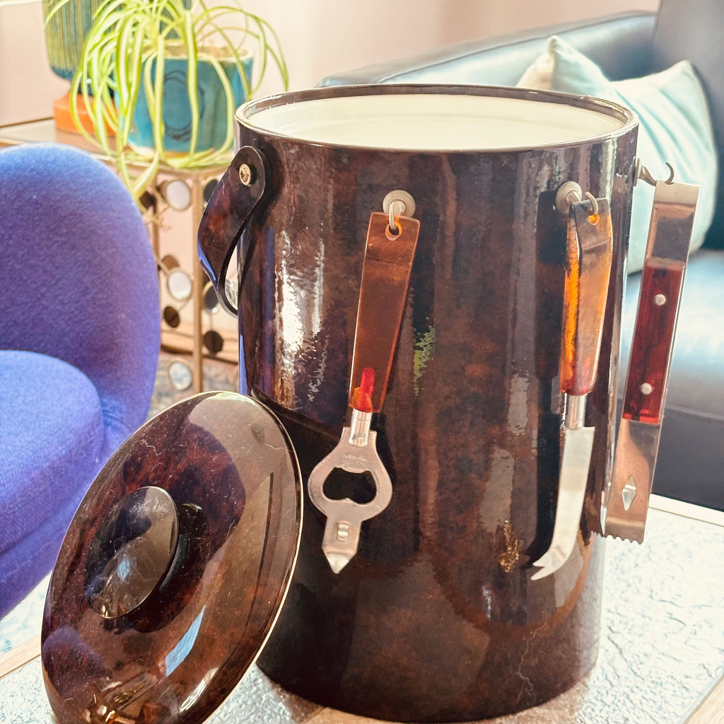 Georges Briard Signed Lucite and Tortoise Vinyl Ice Bucket With Tools